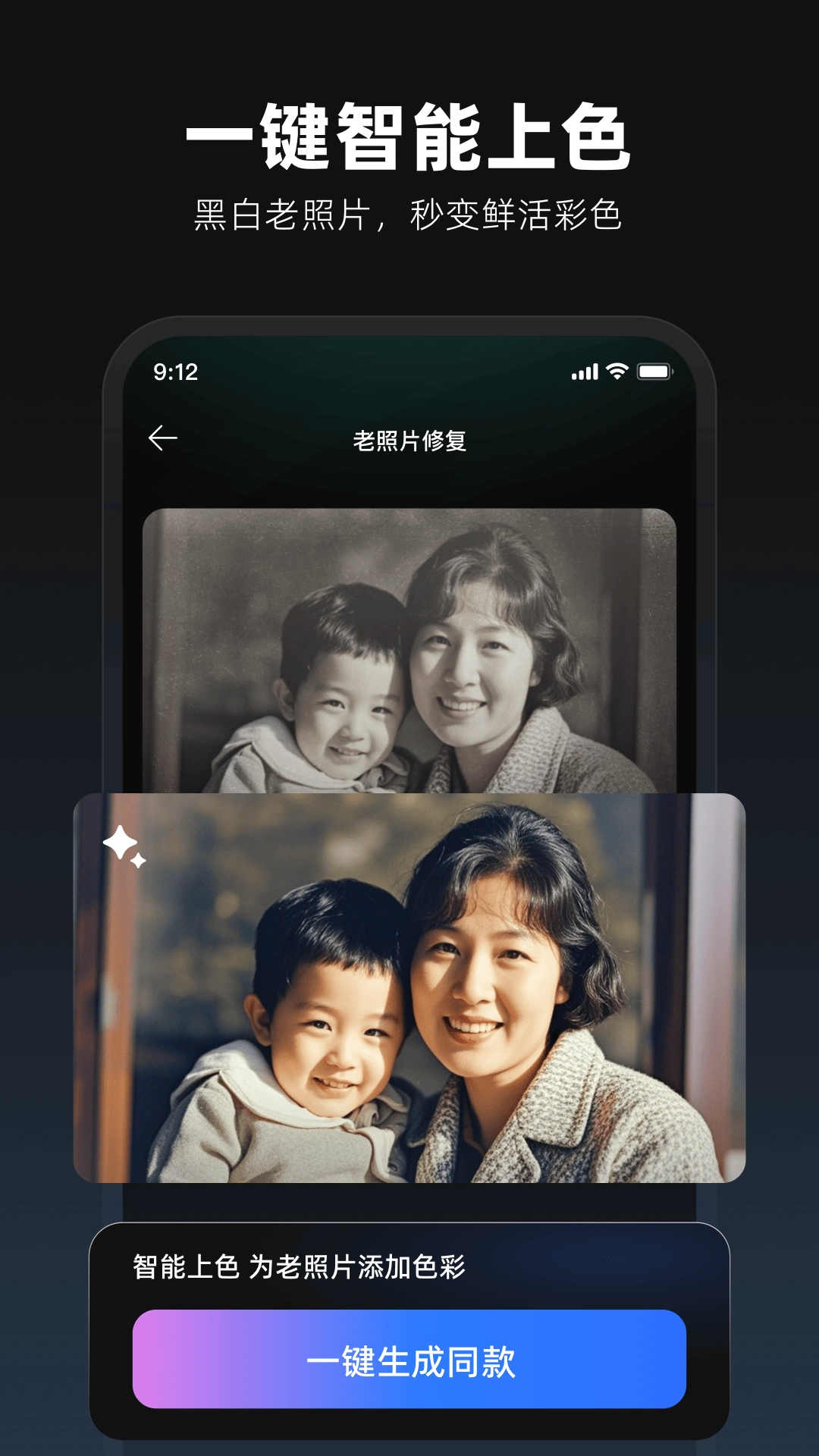 3. 拯救老照片必不可少的神器,只需轻轻一点,就能轻松完成修复。
