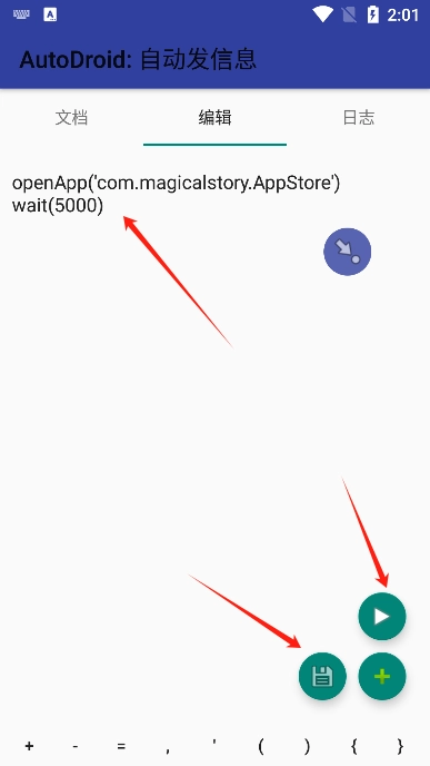 8、至此,你的脚本录入已完成。请点击右下方的保存按钮进行保存操作,而右侧的播放按钮用于运行脚本,点击该按钮后,脚本预设的应用将自动打开。