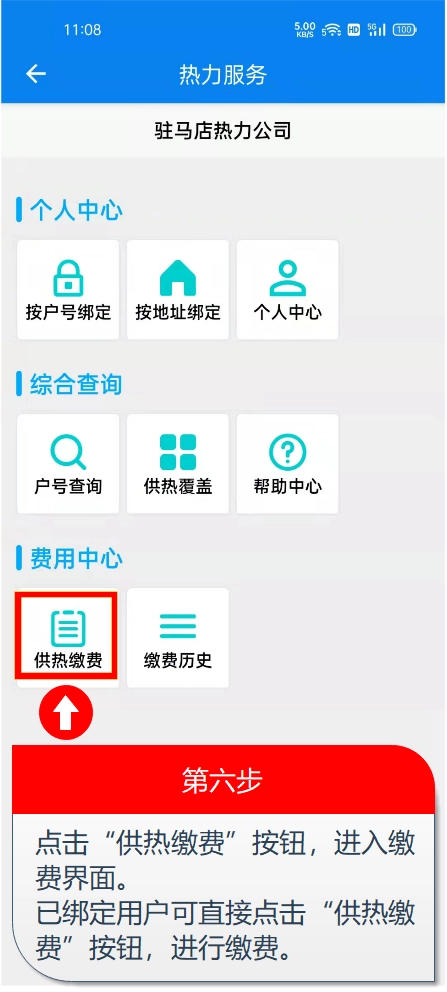 第六步:在主页点击“供热缴费”按钮进入缴费页面。