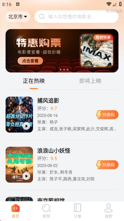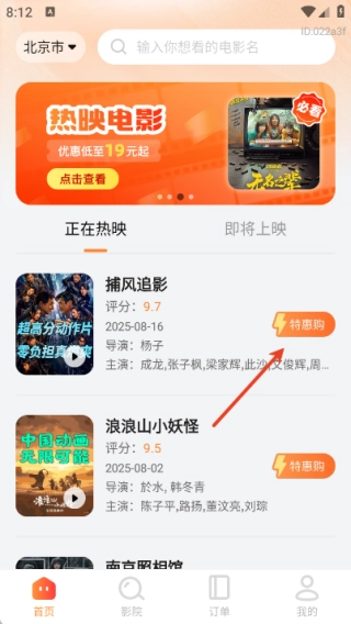1. 开启软件,于首页便能瞧见诸多正在热映的电影,挑选你想要观看的那部影片,点击特惠购。