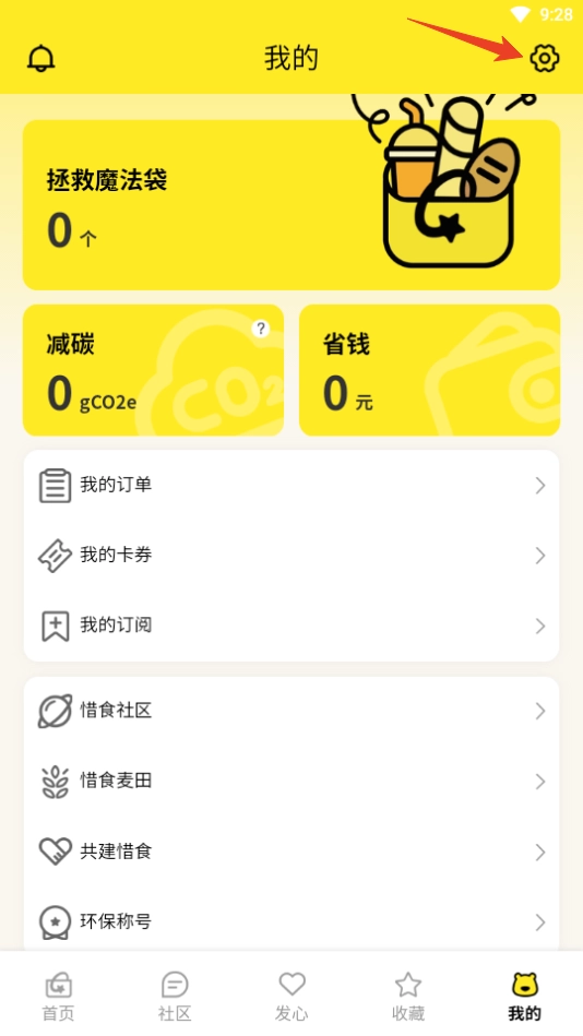 1. 开启惜食魔法袋,轻点下方的【我的】,接着点击右上角的【设置】图标。