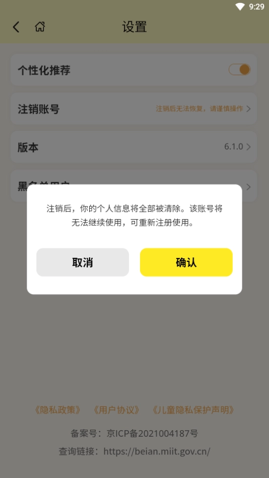 2. 点击【注销账号】按钮。