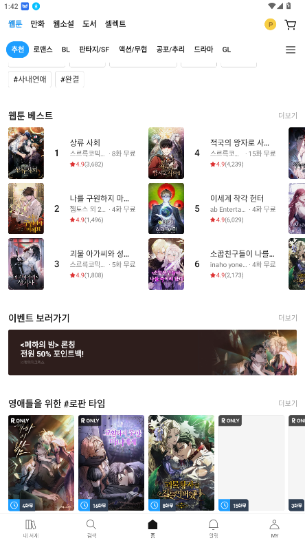 ridibooks最新版下载带给大家,这是一款专业正规的韩漫阅读软件。软件覆盖小说、漫画、杂志等多类别,软件主打正版内容与多样化题材。阅读过程中可对文本进行整章或选中翻译,便于跨语种阅读。欢迎用户下载使用。