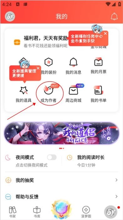 1、第一步,需先注册账号并完成登录,随后在“我的”个人中心中找到「成为作者」入口。