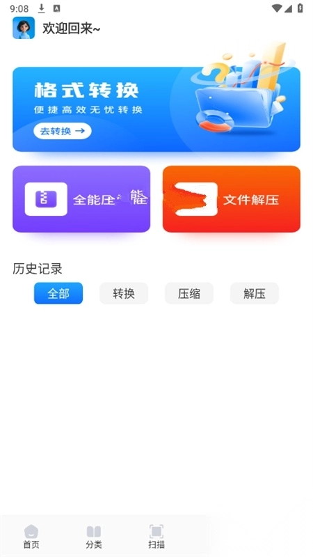 6、在文件页面,还提供了格式转换、压缩和解压等功能