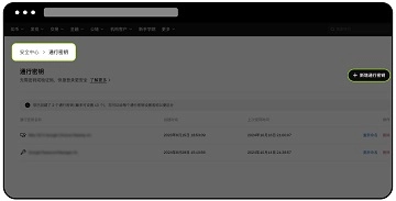 在安全中心中找到通行密钥选项,选择新增通行密钥。