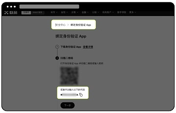 在的安全中心中找到绑定身份验证器App页面,复制密钥。