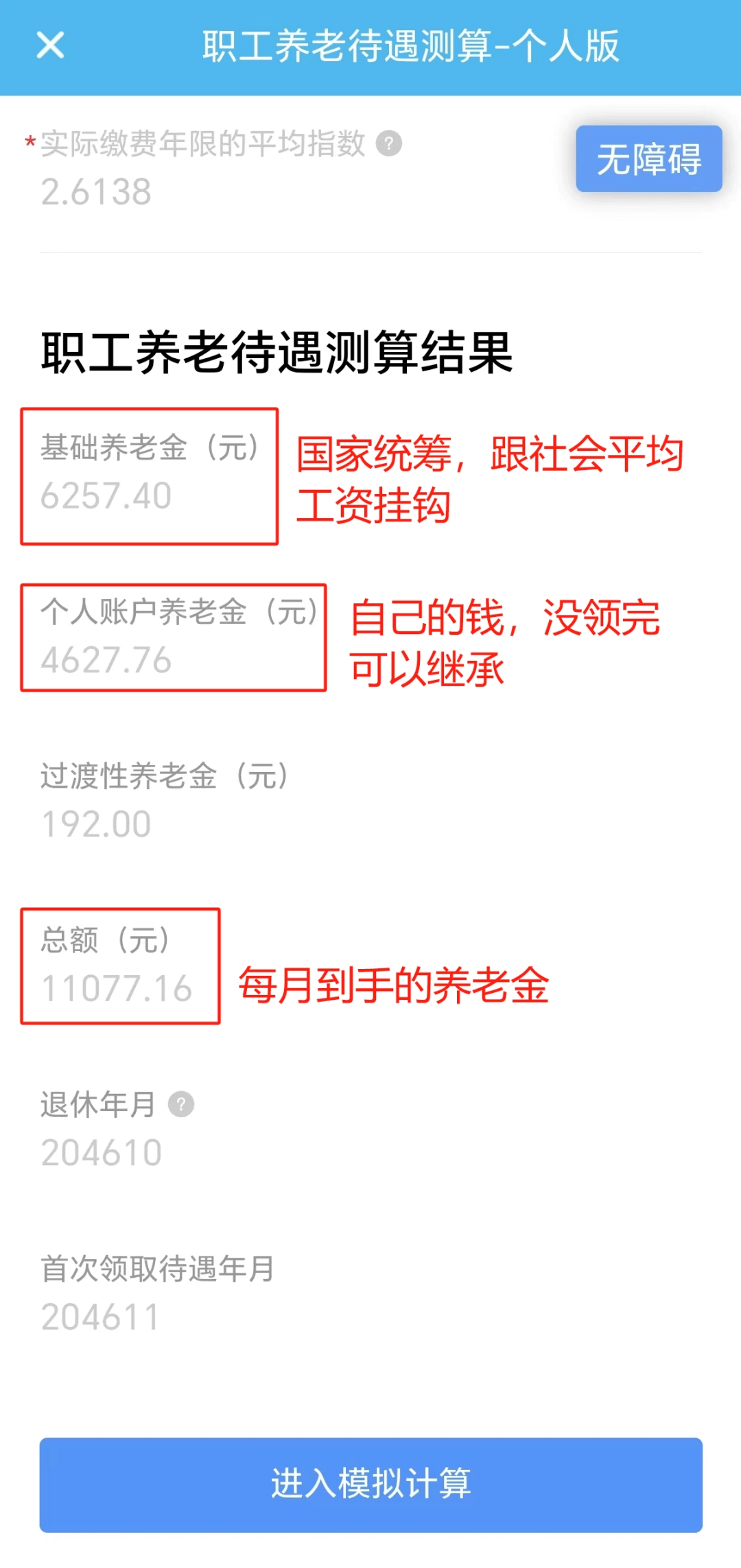 3.填完之后点击【进入模拟计算】,就能看到测算结果了: