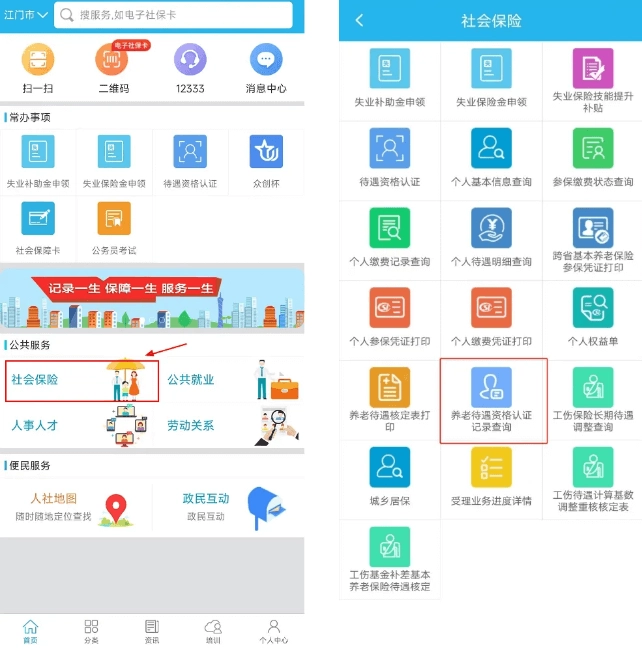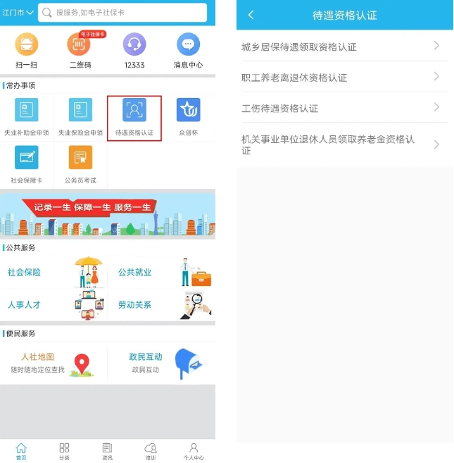 待遇资格认证,向参保人提供城乡居民养老保险待遇领取资格认证、职工养老保险离退休资格认证、工伤待遇资格认证以及机关事业单位退休人员养老金领取资格认证等各类服务。具体操作步骤如下: