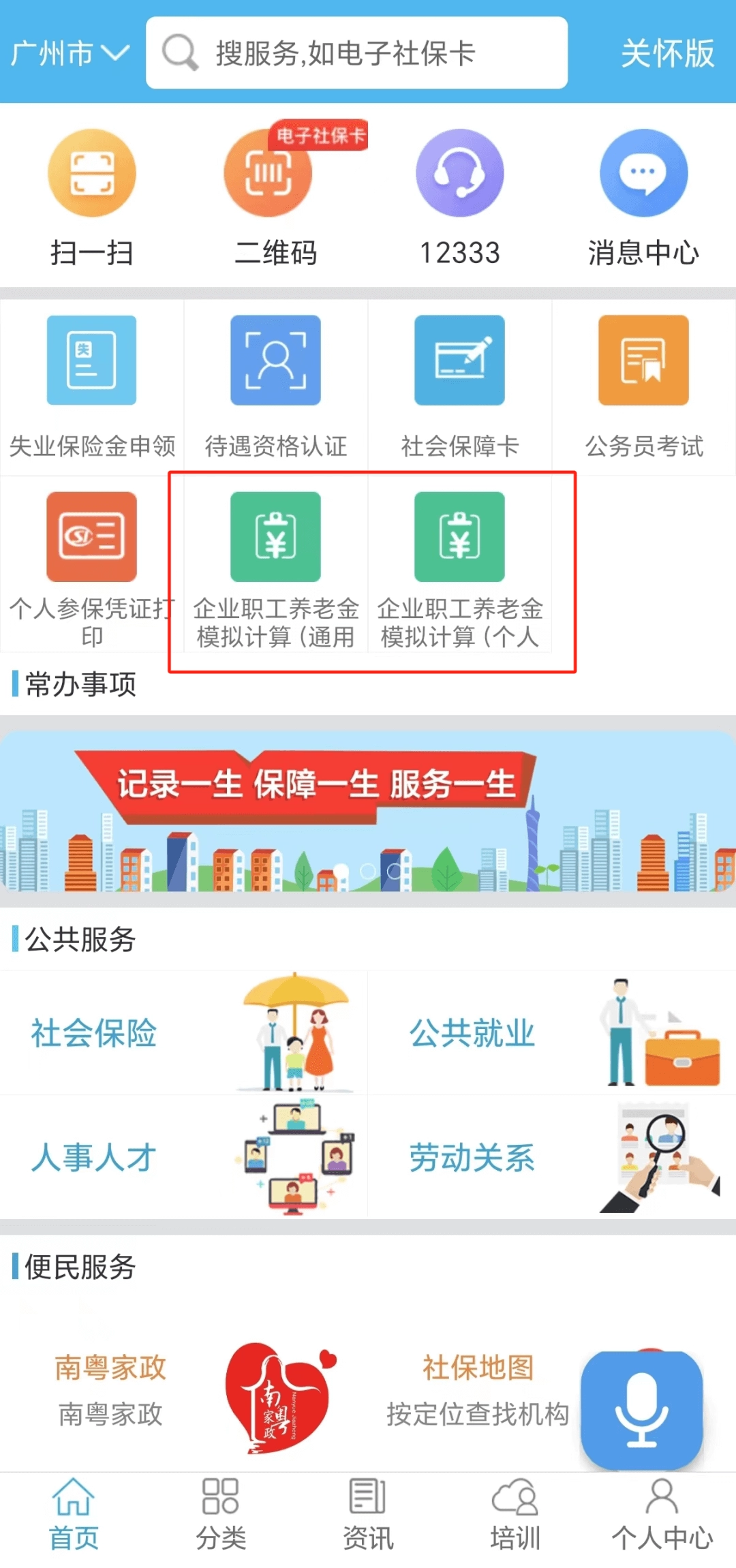 1. 在首页找到并选择【企业职工养老金模拟计算】,该功能设有通用版与个人版,在此建议优先选择【个人版】。