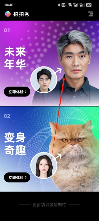 拍拍秀,堪称创意拍照领域的神奇利器,它能引领你踏入奇妙的影像变幻世界。这款神器具备两大超有趣功能——未来年华与变身奇趣。别再犹豫啦,快来加入拍拍秀,即刻开启属于你的奇幻拍照之旅,去探索那个与众不同的自己吧!