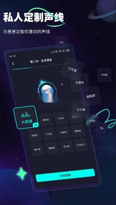 定制AI的声音,从多种音色中挑选或上传自己喜欢的声音。