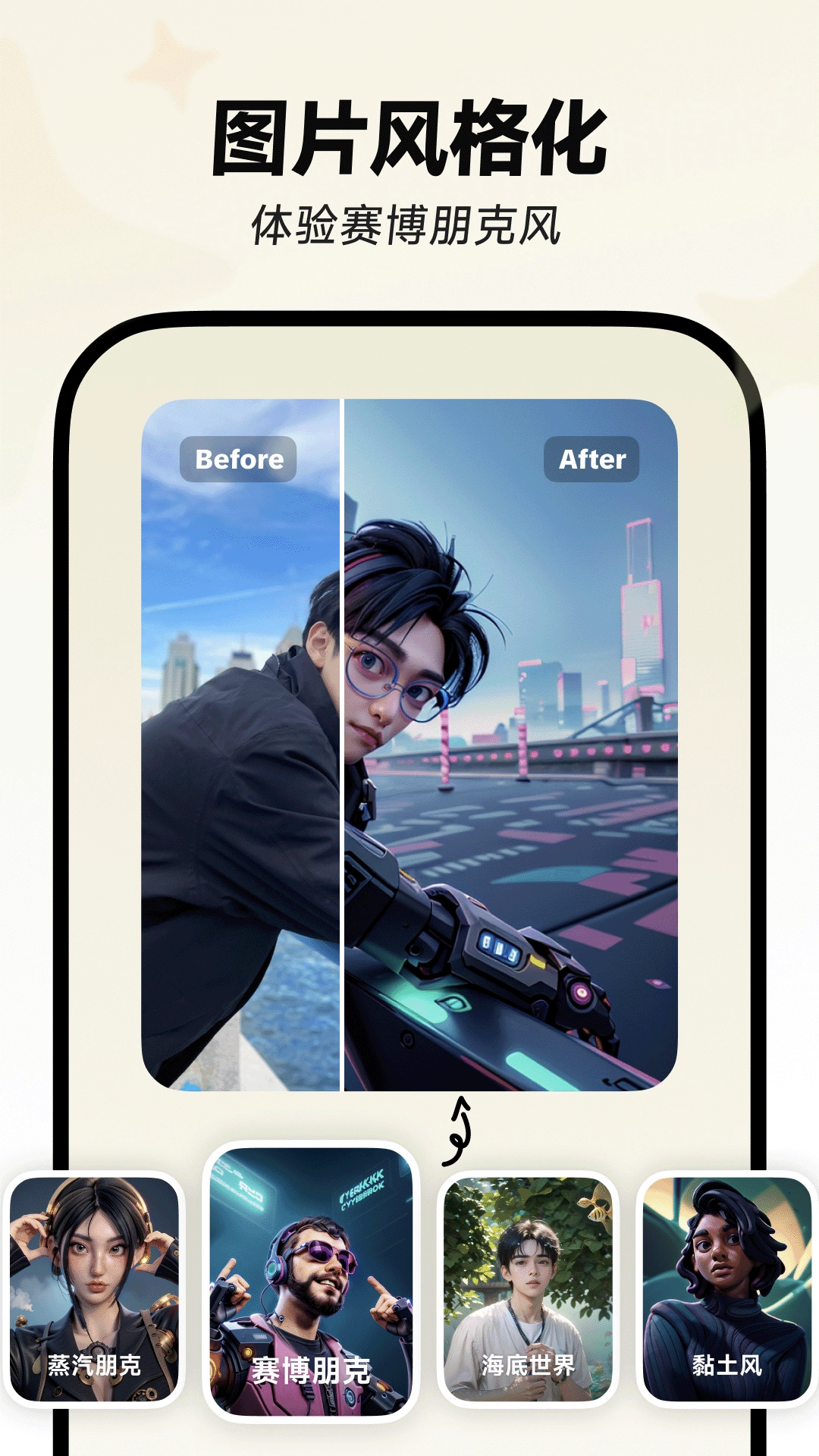 你只需轻松上传图片,简单输入几个关键词,就能随心切换风格,无论是像素风、赛博朋克风,还是日式漫画风,瞬间即可拥有。