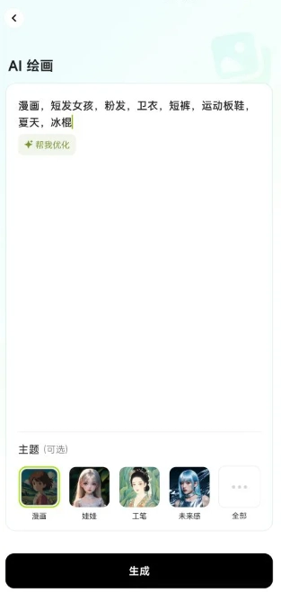 2、选择好主题后输入你想要的图片风格,越详细,生成效果越好