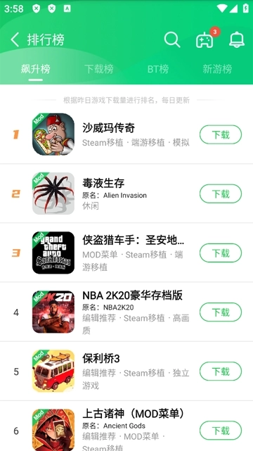 进入软件后可以发现,有许多游戏推荐,也有排行榜。